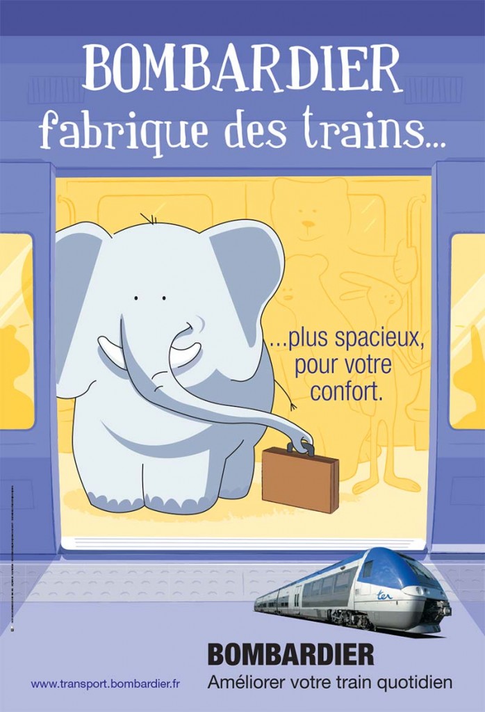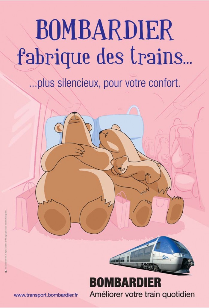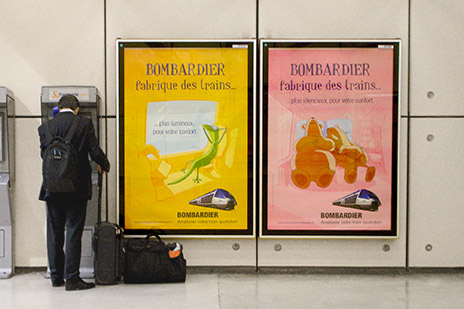 Campagne de notoriété du fabriquant de train Bombardier. Affiches, annonces presse et campagne opérationnelle en gare avec entre autre des distributions de bonbons.