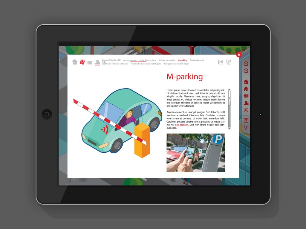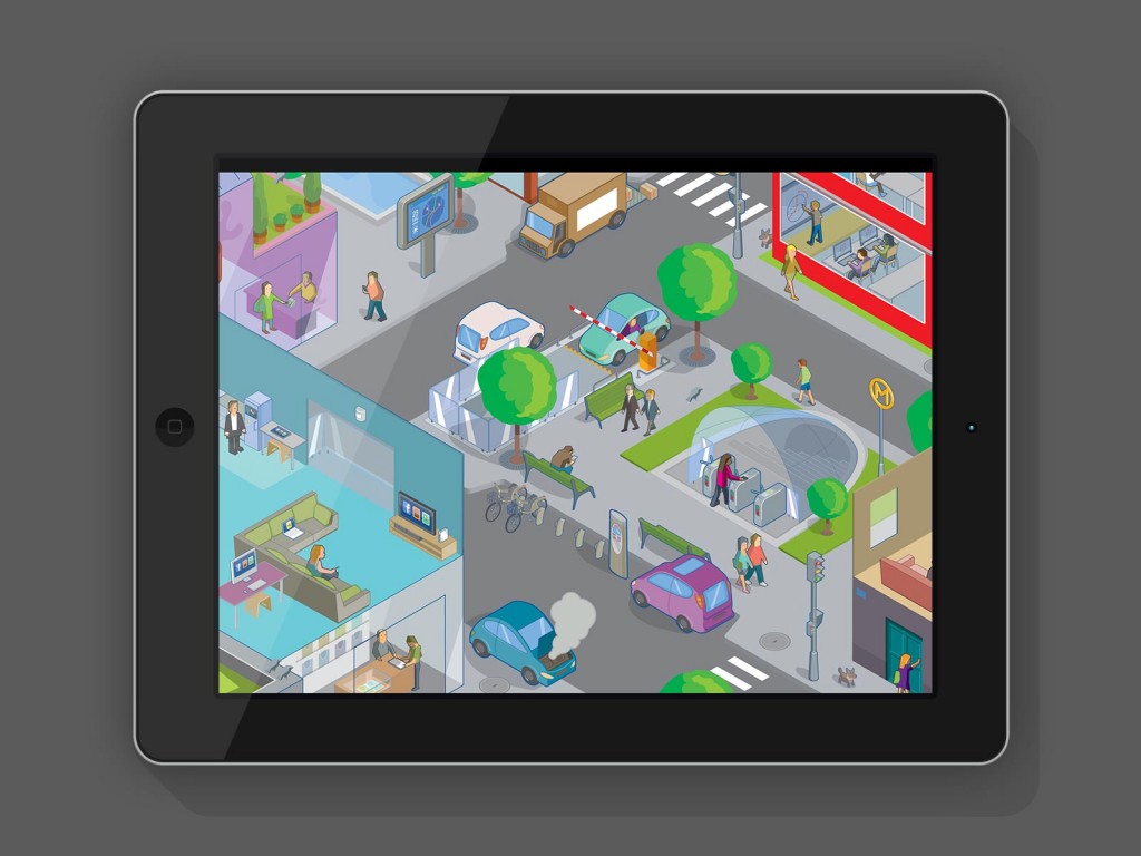 Illustration interactive développée pour montrer les différentes applications de la vie connectée.